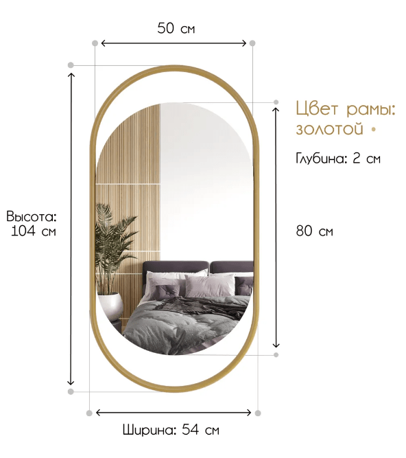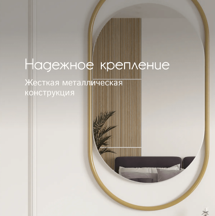 Зеркало «Muse». Артикул GMZ-02-1-1/2/3 Идеальная симметрия и простая изысканность ар-деко в виде овального настенного зеркала в металлической раме способны дополнить интерьер, выполненный в любом стиле, начиная от винтажного и заканчивая авангардным. Зеркальное полотно является продукцией известного бельгийского производителя AGC, который славится непревзойдённым качеством своих зеркал. Идеально подходит для ванной комнаты или спальни.Характеристики:– профиль рамы круглый, диаметром 20 мм; – габариты – 1040х540х20 мм; – размер зеркального полотна – 800х500 мм, толщина – 4 мм; – вес – 7 кг; – устойчивая матовая порошковая окраска; – возможные цвета – золотой, чёрный, белый; – саморезы для крепления к стене в комплекте; – гарантия – 1 год.